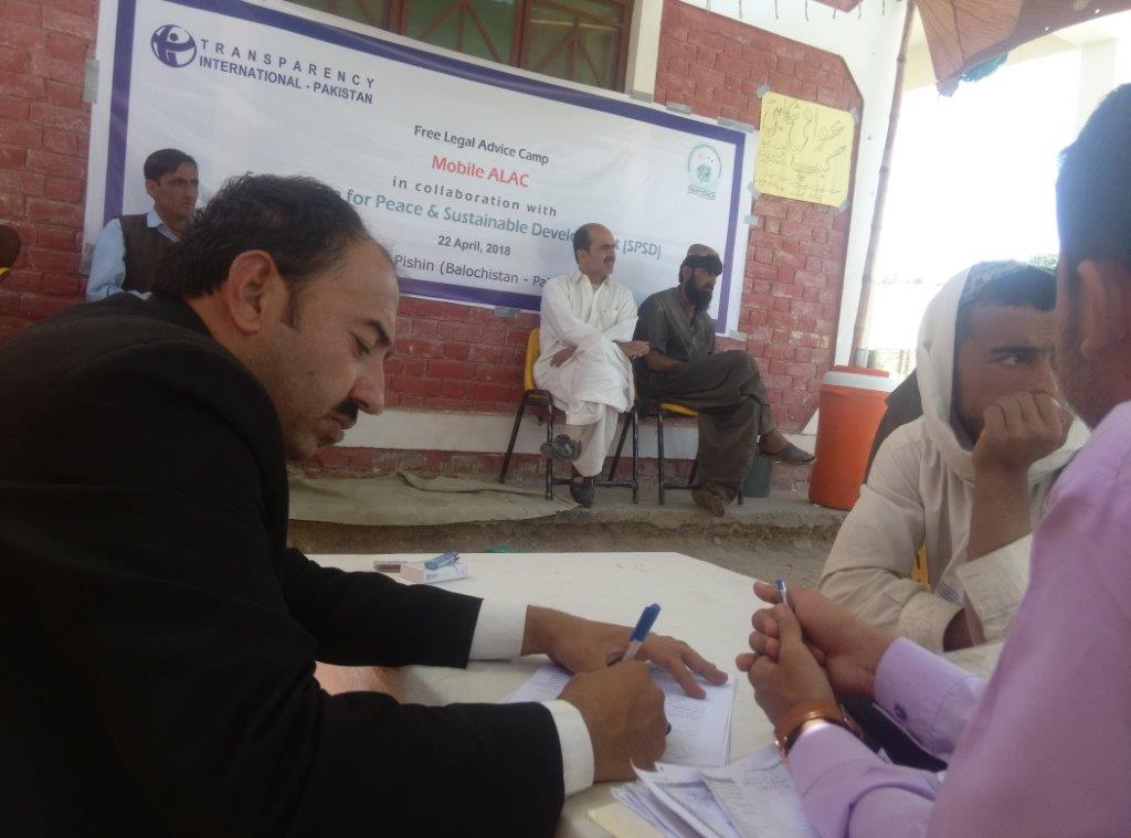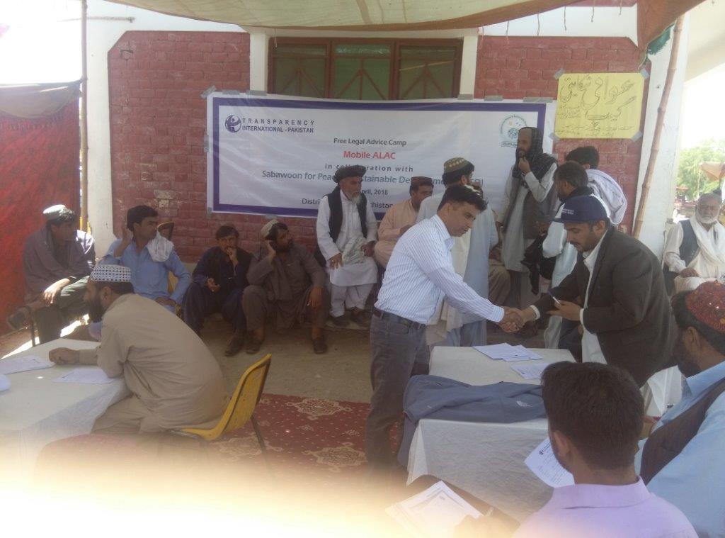 On 23-4-2018, TI Pakistan organized a free legal advice camp (Mobile ALAC) in district Pishin in collaboration with Sabawoon for Peace and Sustainable Development. Two lawyers in the Mobile Camp provided free legal advice to the victims and witnesses of corruption. Majority of the complaints were about shortage of water supply, problems in getting CNIC cards, and administrative issues of the government departments. A total of 46 initial contacts were received which were all males.