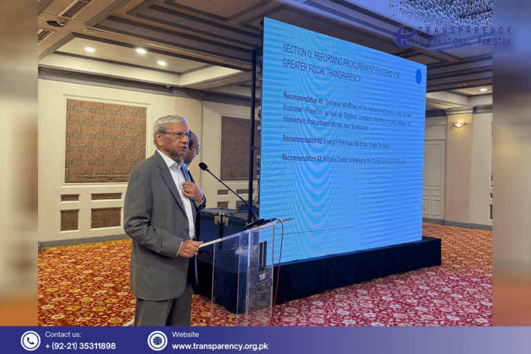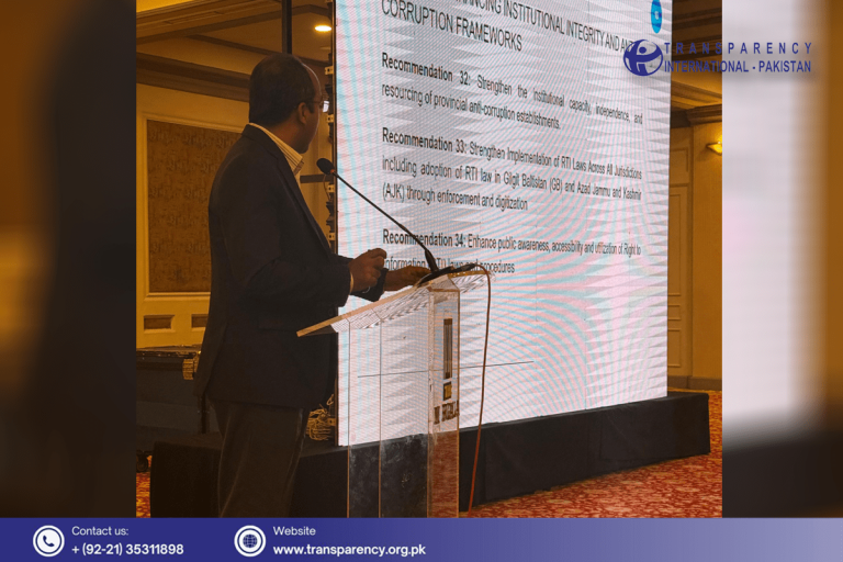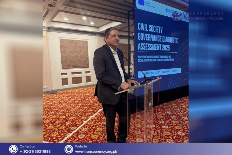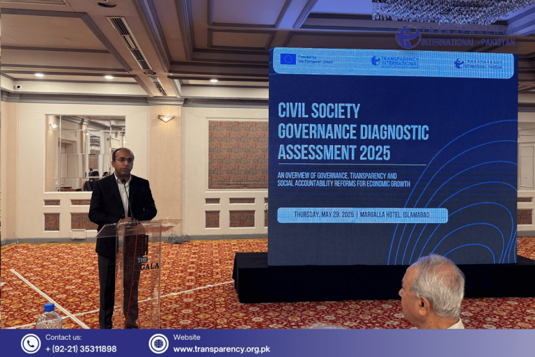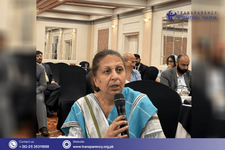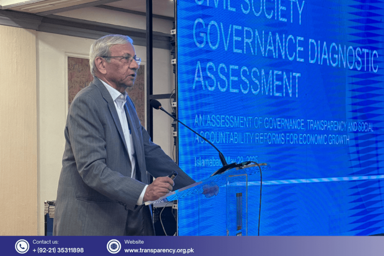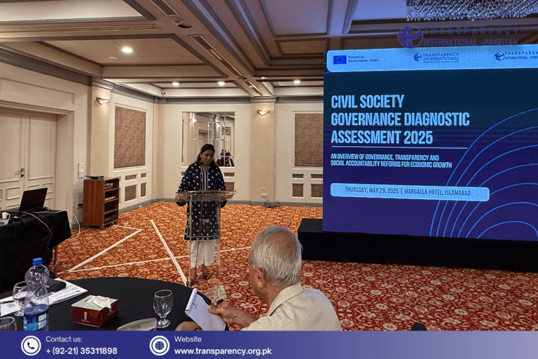Transparency International Pakistan organized its second stakeholder consultation under the Civil Society Governance Diagnostic Assessment in Islamabad, bringing together a broad spectrum of voices including public officials, civil servants, parliamentarians, academics, civil society leaders, journalists, and governance experts. The session was opened by Mr. Kashif Ali, Executive Director of TI Pakistan, followed by a briefing on the diagnostic’s objectives and methodology by Ms. Raima Mahmood, Policy and Research Coordinator. Technical presentations were delivered by Dr. Kaiser Bengali on fiscal governance and by Mr. Kashif Ali on governance frameworks and institutional reform pathways.