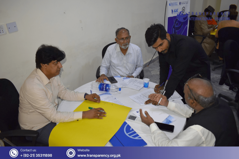 The discussion further focused on gathering participants’ feedback on the Sindh Whistleblowers Protection and Vigilance Commissions Act 2025. The participants were given a draft of the Act formulated by TI and were divided into groups to provide recommendations on how to make the draft more inclusive.