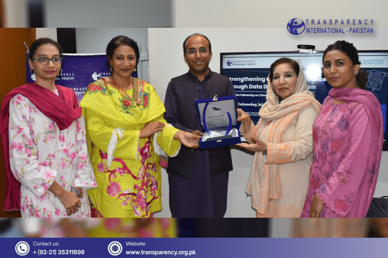 Transparency International Pakistan conducted the second module of its ongoing Journalist Fellowship on Climate Finance and Transparency, titled “Strengthening Climate Governance through Data-Driven Journalism”. The session took place on July 30, 2025, in a hybrid format with fellows joining both in person and online. The objective of the training workshop was to empower journalists with data tools and techniques to enhance their climate reporting, enabling them to produce impactful, localized stories on climate change and its associated challenges.