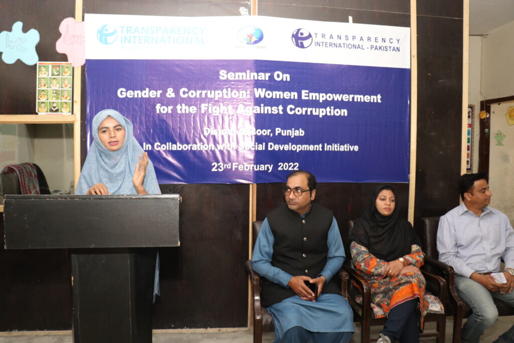 Transparency International Pakistan in collaboration with Social Development Initiative (SDI) organized a seminar in Chinna Arla, District Qasoor, Punjab on Gender & Corruption: Women Empowerment for the Fight against Corruption. The session was attended by 36 females. The objective of the session was to educate these females how various forms of corruption and corrupt practices usurp women rights and hinder women empowerment despite many women supported laws.