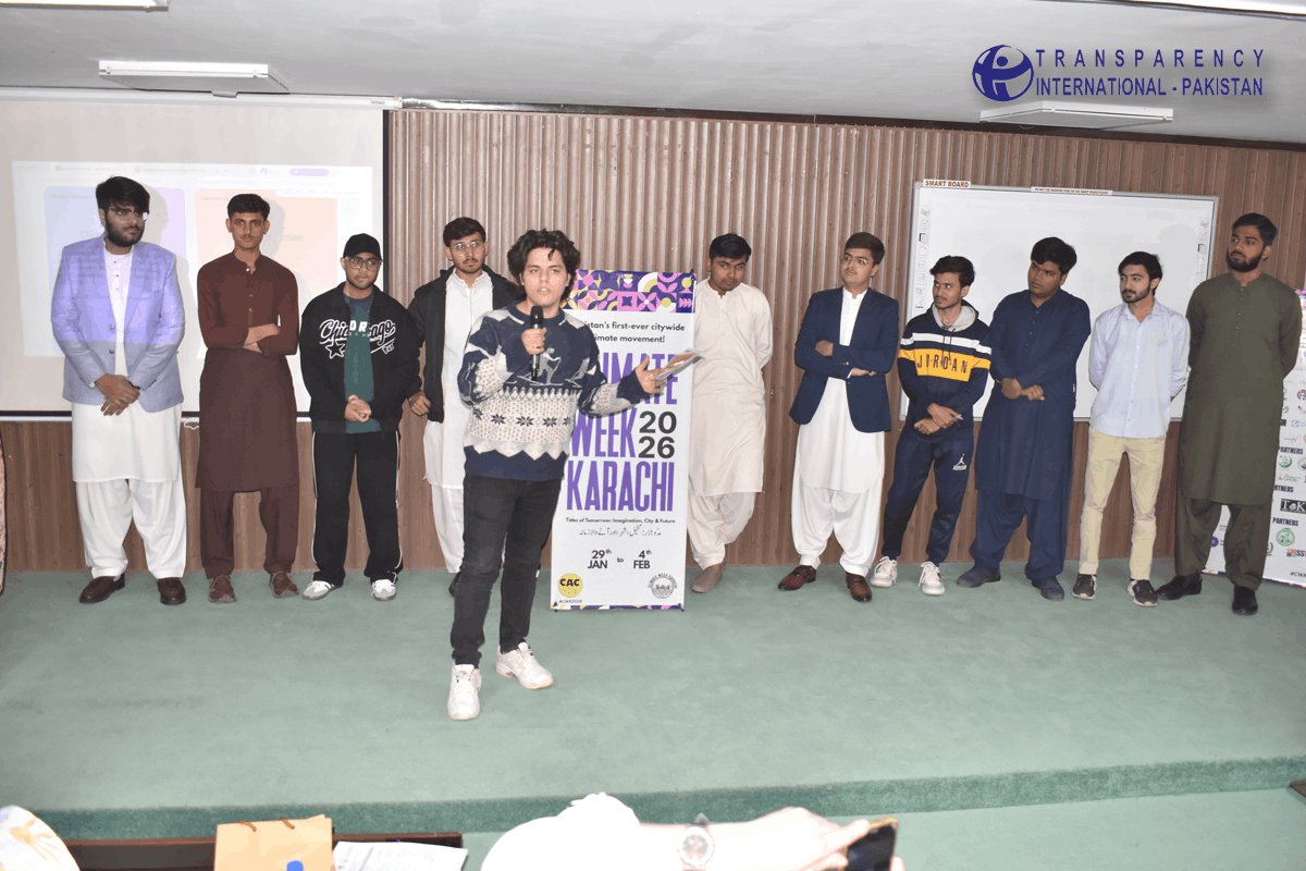 Transparency International Pakistan, in collaboration with Climate Action Centre, and Bahria University, Karachi, organized an engaging and awareness raising session titled “Strengthening Youth Understanding of Climate Change and Social Accountability in Climate Governance” on January 30th, 2026, at Bahria University, Karachi Campus.